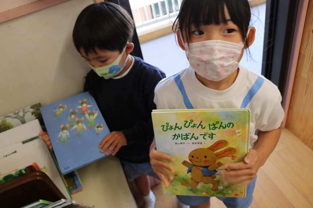 子どもたちが自分の好きな絵本を選んで持って帰り