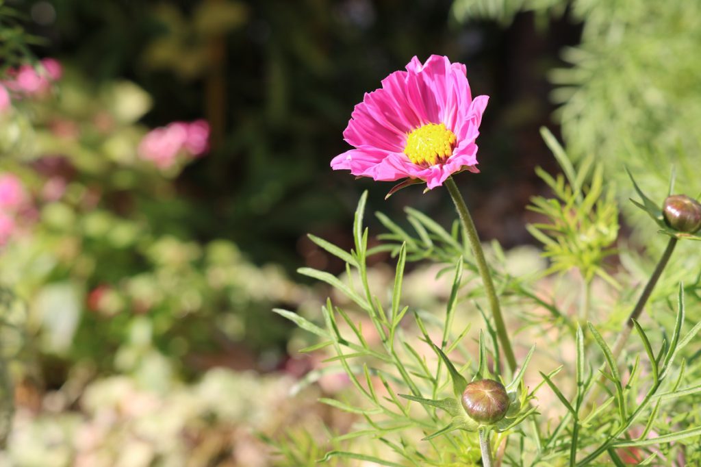 年長さんが植えたコスモスの開花第1号を確認しました!