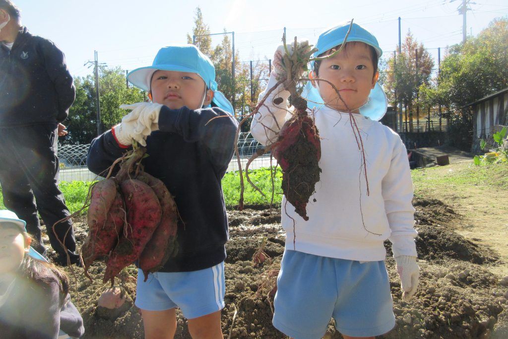力いっぱい引っ張ってとっても大きなお芋が取れました!