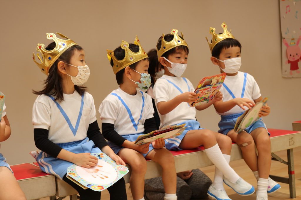 お誕生日月の子どもたちがステージに並び