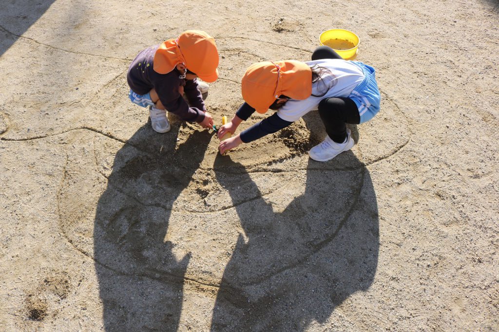 気にもかけずに一生懸命の年少二人組