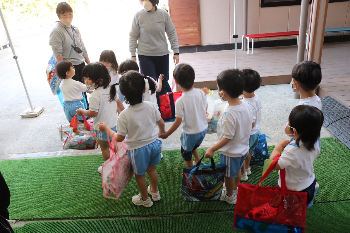 今日は2歳児こぐま組とつぼみ組の