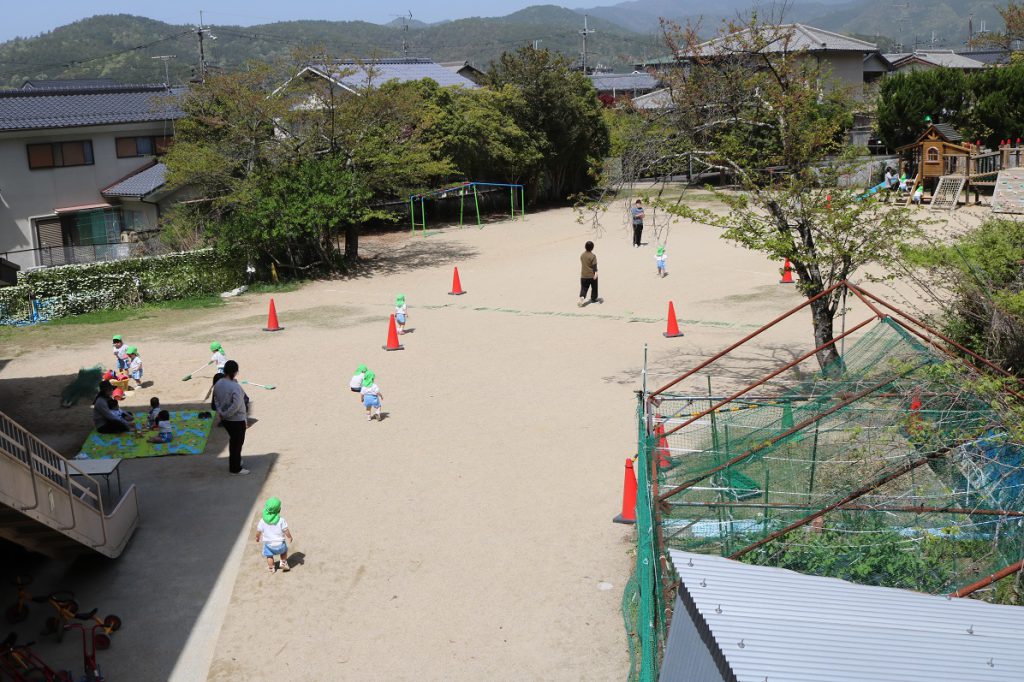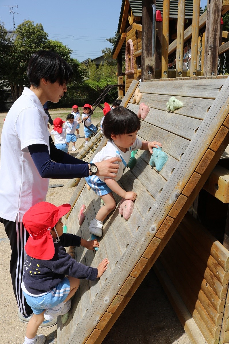 2歳児つぼみ組のみんなは一足お先に遊具遊び
