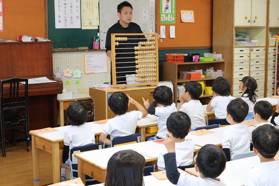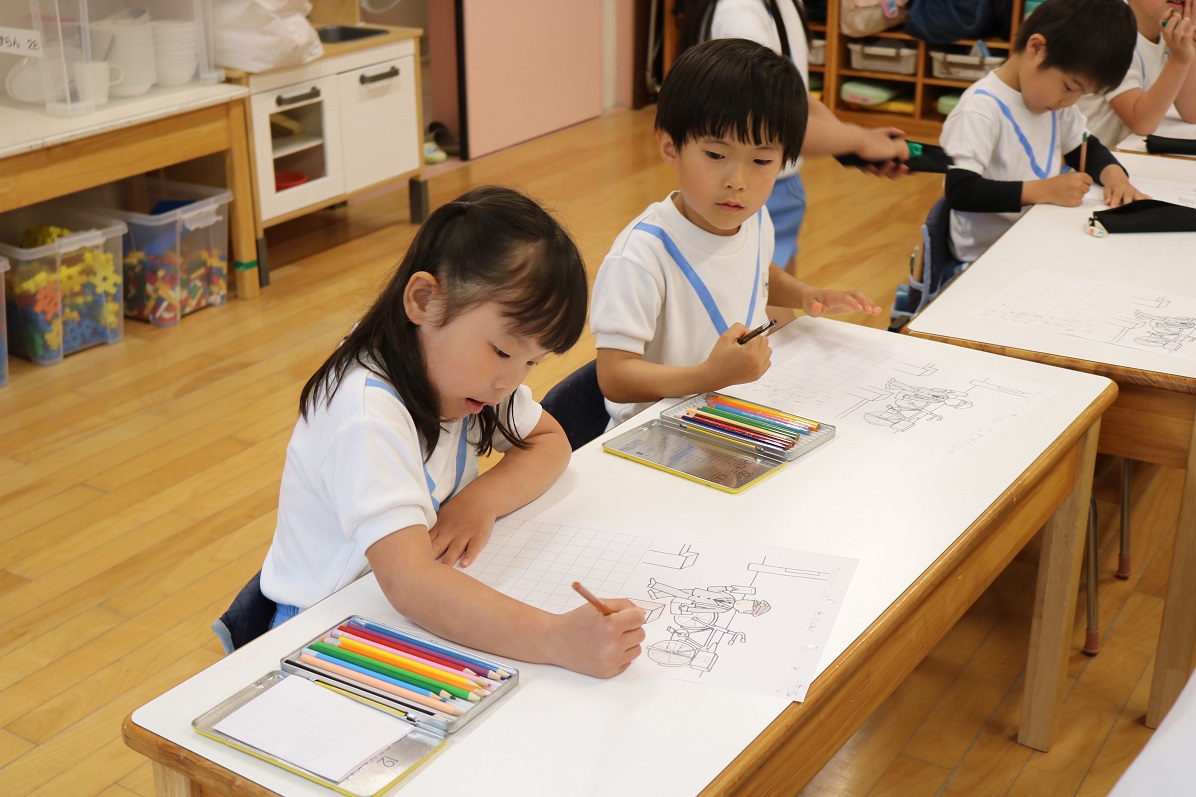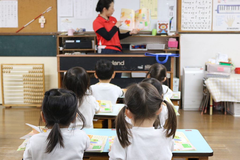 絵本をひろげて先生と一緒にお話しを読んでいました