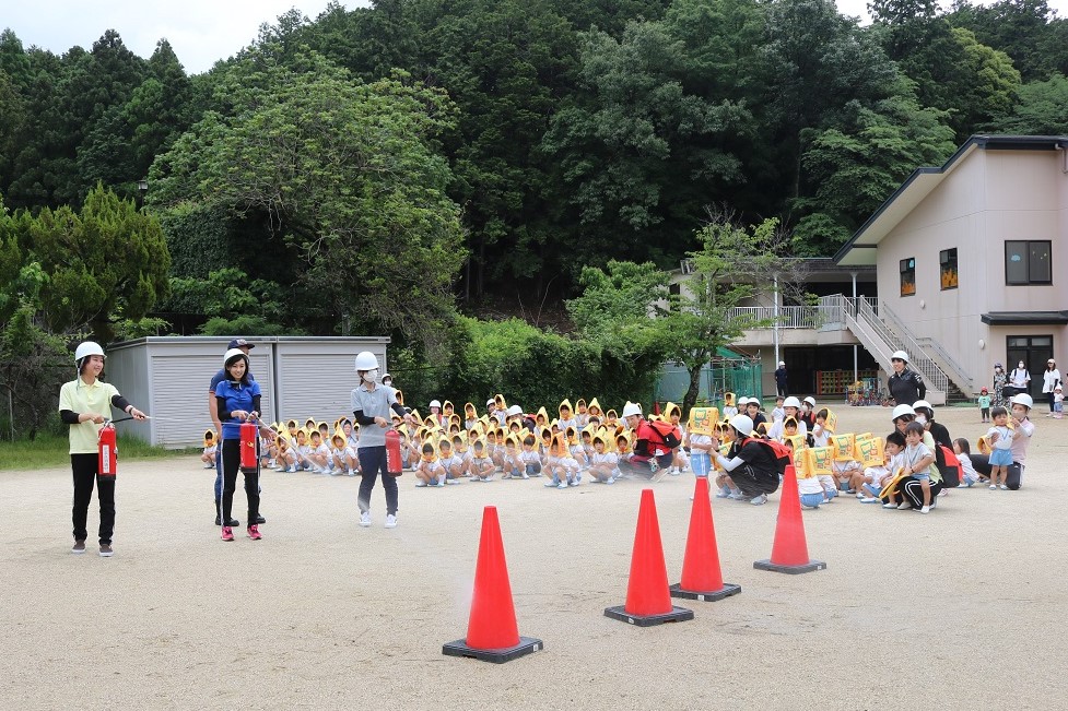 その後は子どもたちに見守られながら職員の消火訓練です