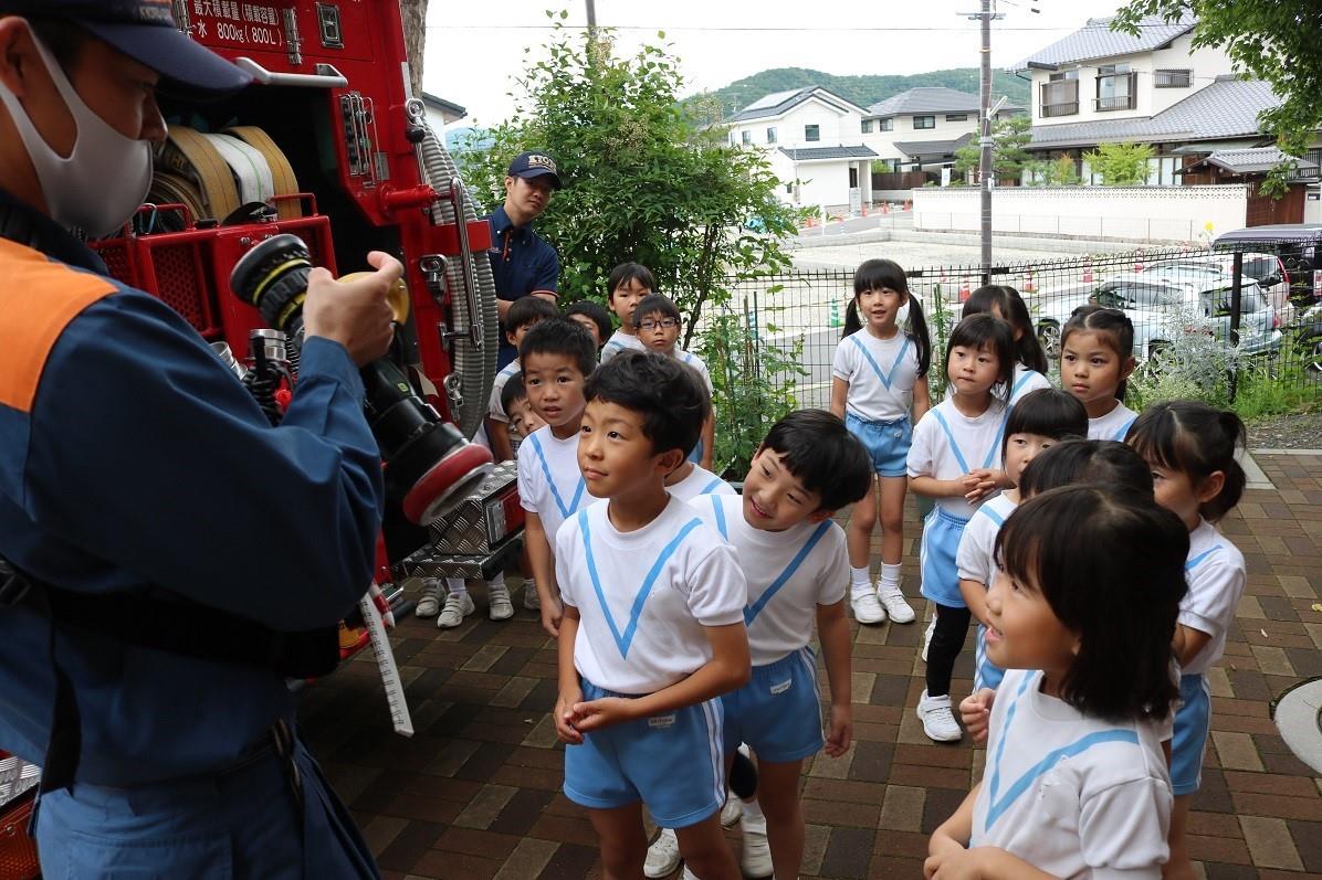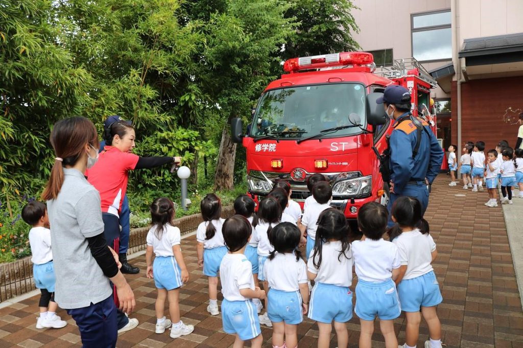 今日は園に消防車と消防士さんが来てくれました