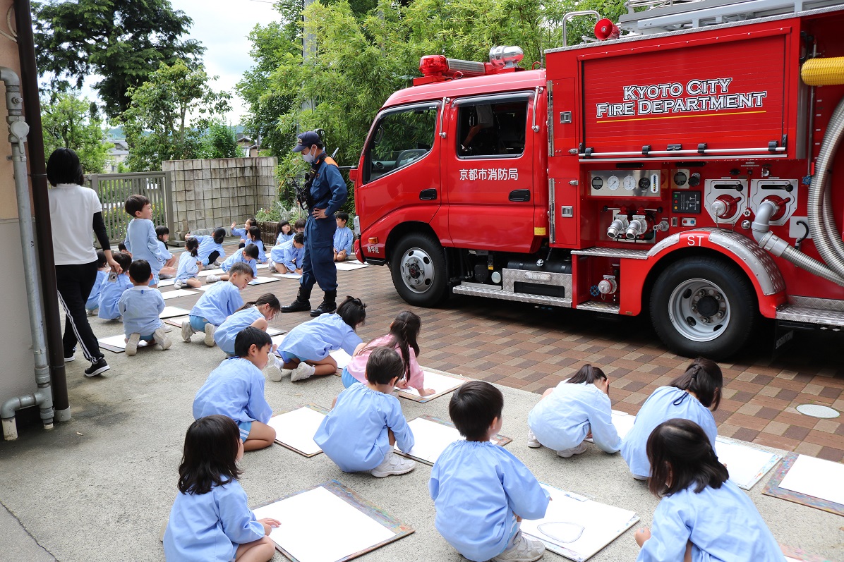 年長組が消防車の写生をしました!