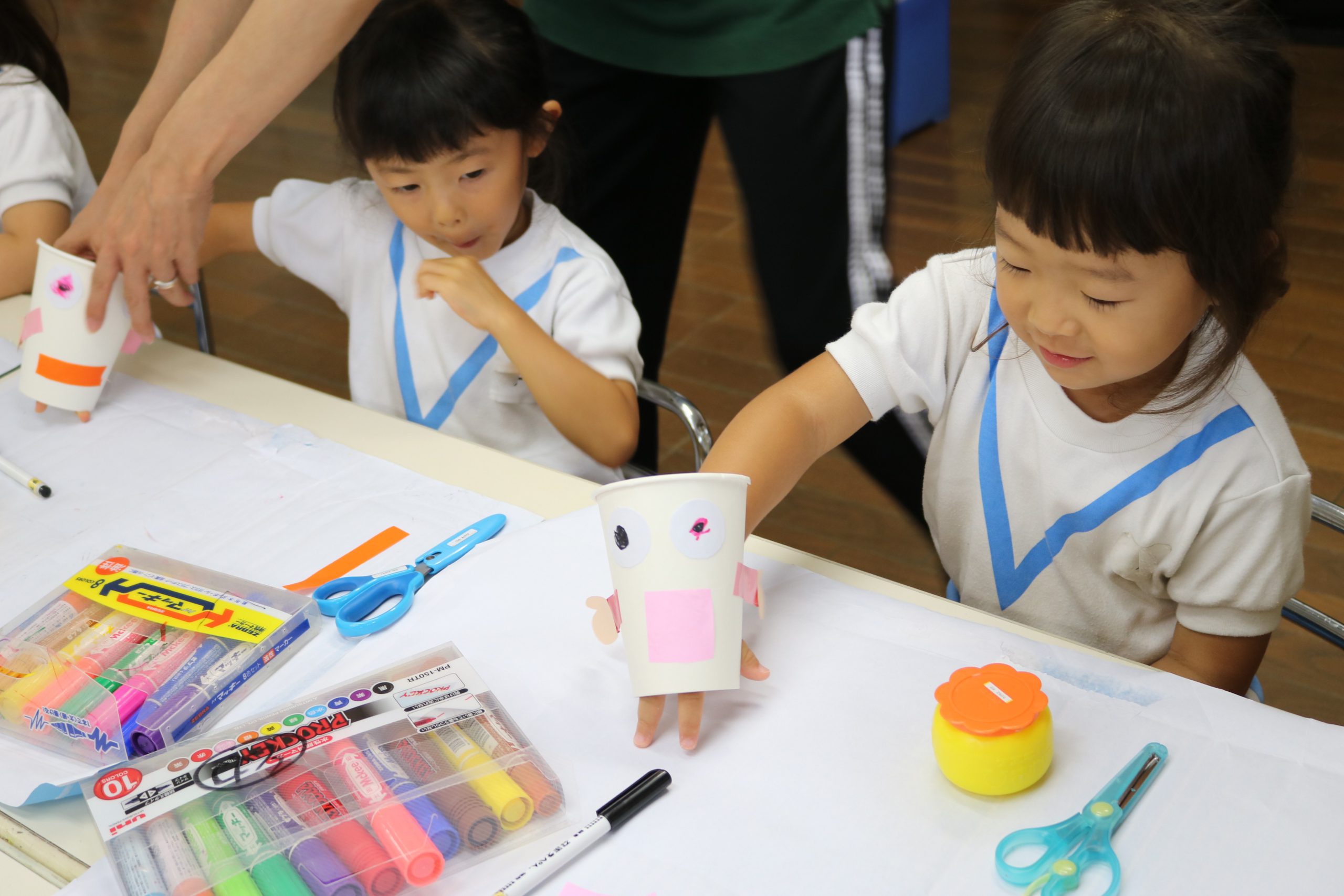 紙コップに目や手をつけたり