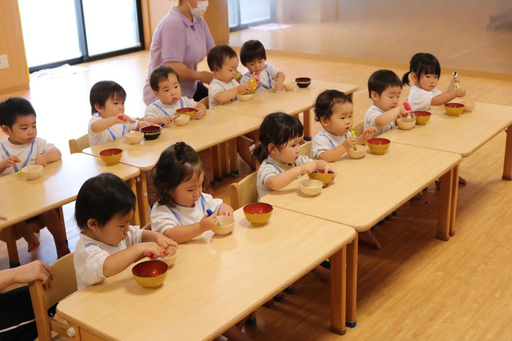 今日、0歳児と1歳児クラスでは英語レッスンと育脳教室がありました