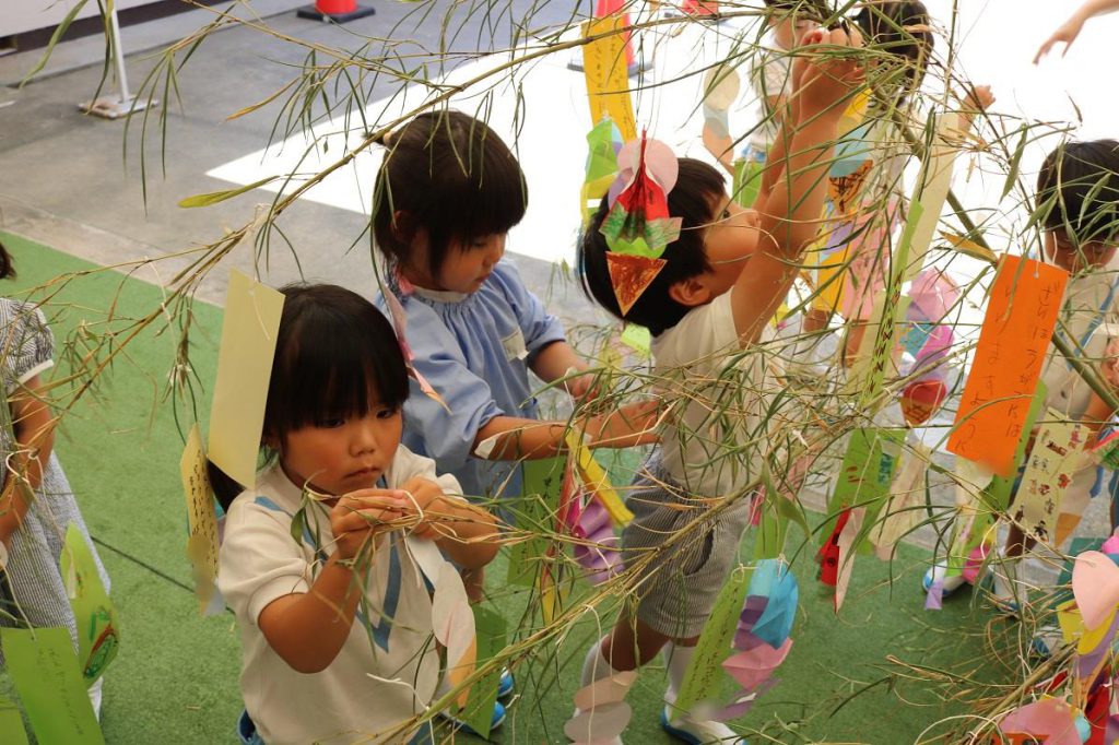 年少もも組のみんなは願い事を書いた短冊を笹に飾っていました