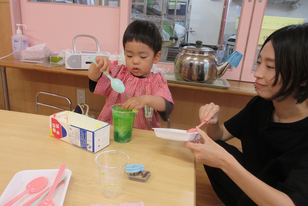 カップに寒天や春雨を入れてパフェ作りも楽しみましたよ!!