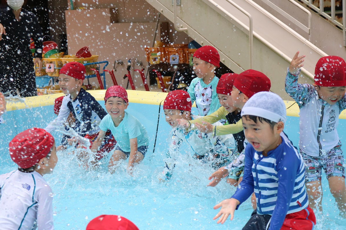 先生がシャワーやホースで雨のように水を降らせるたびに大歓声がおきて
