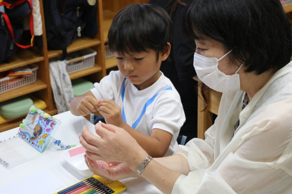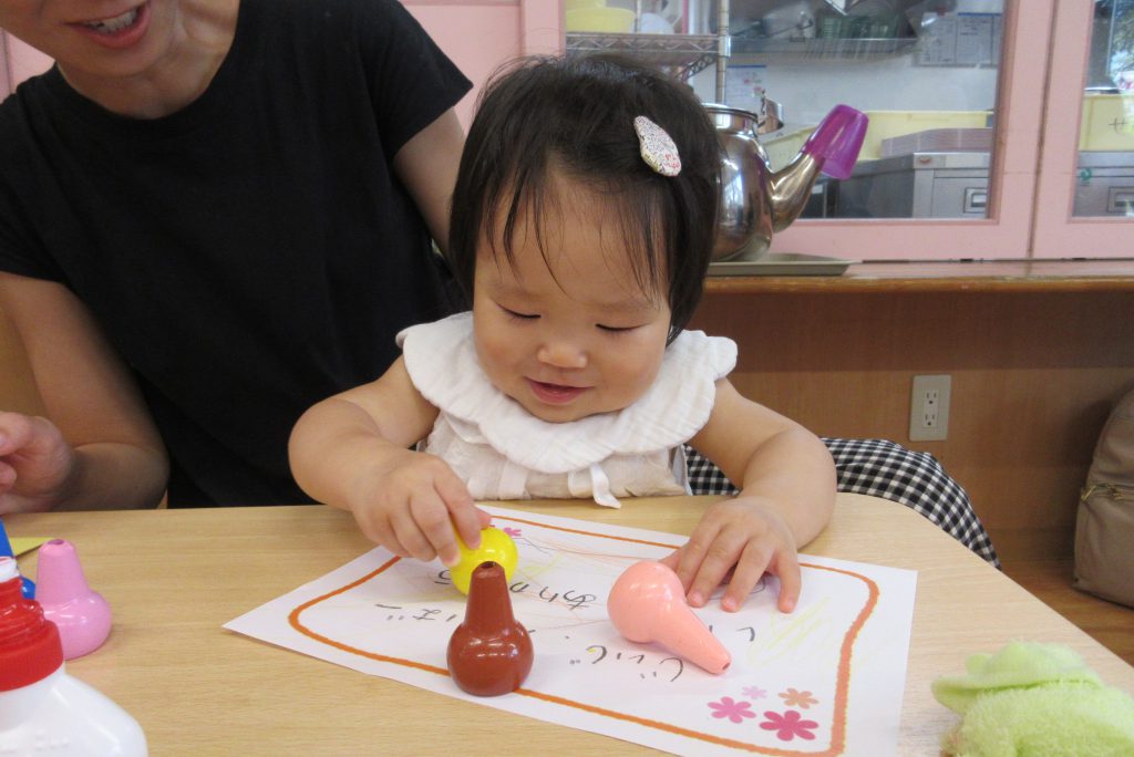 今日の子育て支援あそびにおいでよは、おじいちゃんおばあちゃんへのプレゼント制作