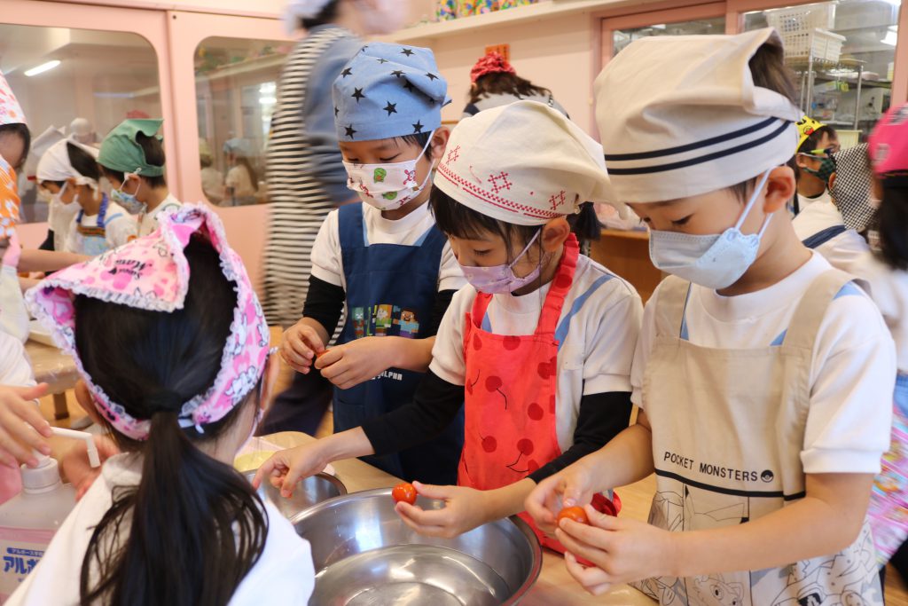 園児一人ひとつずつ「おいしくなあれ!」と