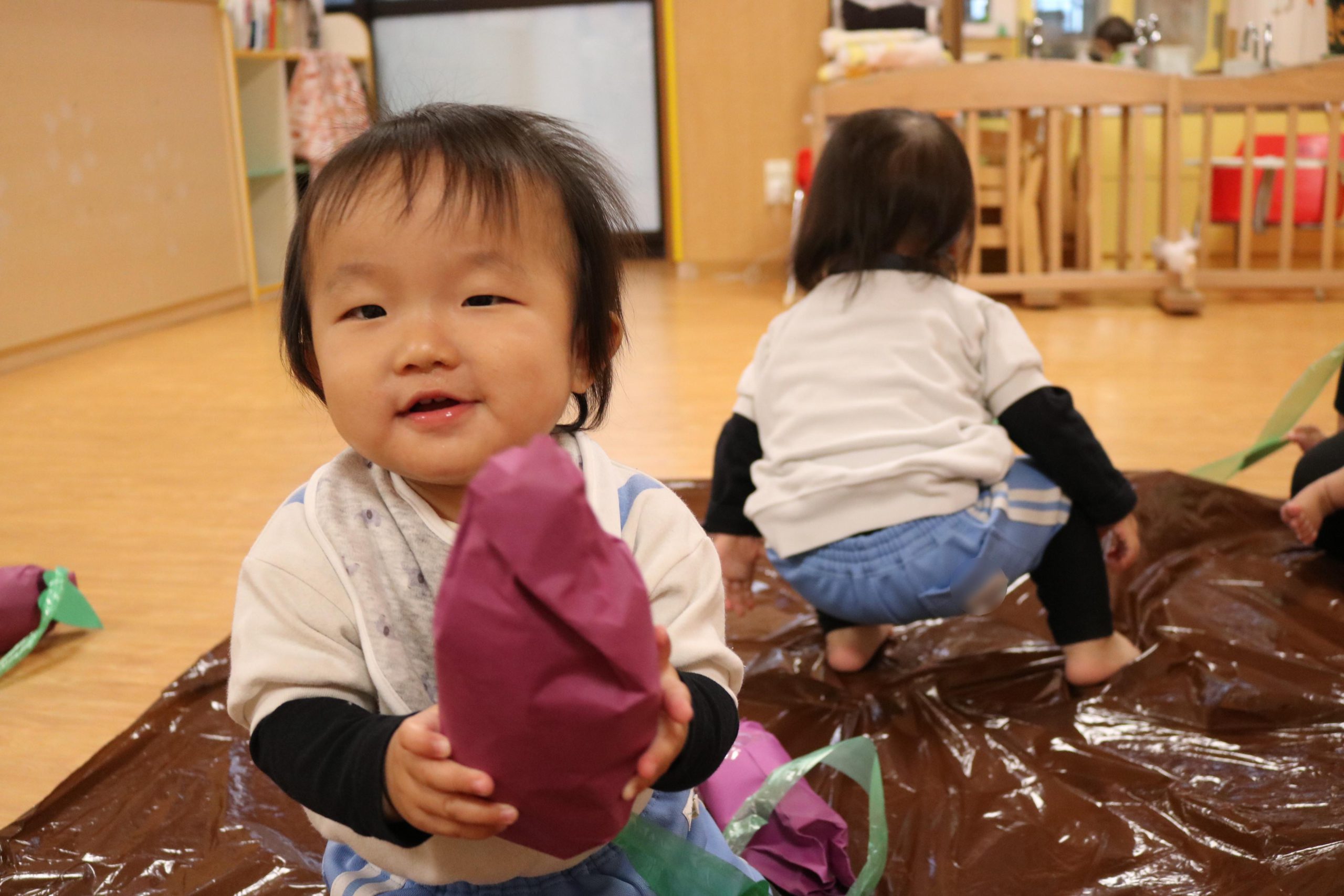 お芋ほり2023.11.20(月) 今日、ひよこ組さんはお部屋でお芋掘りをしました 「できた~!」 「上手~!」 手をパチパチしながら楽しくお芋掘りを楽しみました♪ 大きくなったら本当のお芋掘りも楽しみだね