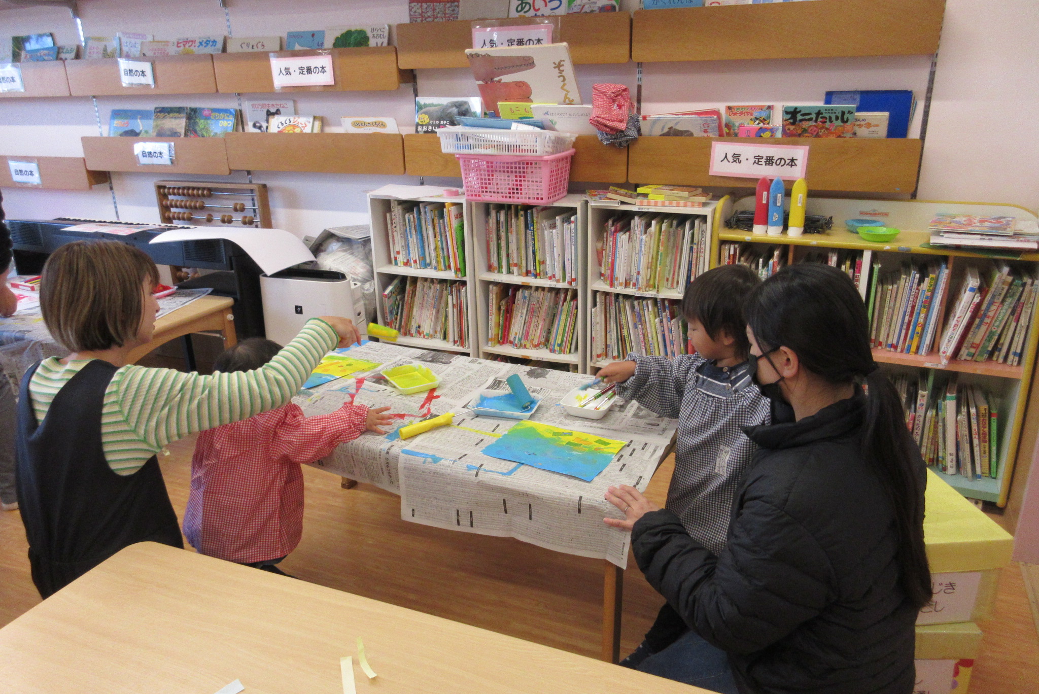 今日の子育て支援あそびにおいでよ!は、「親子で版画制作」
