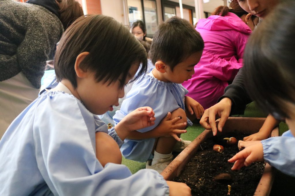 年少組がチューリップの球根植えを体験しました