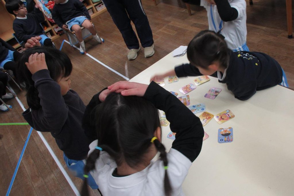 年少は「いろはかるた」年中は「昔話かるた」