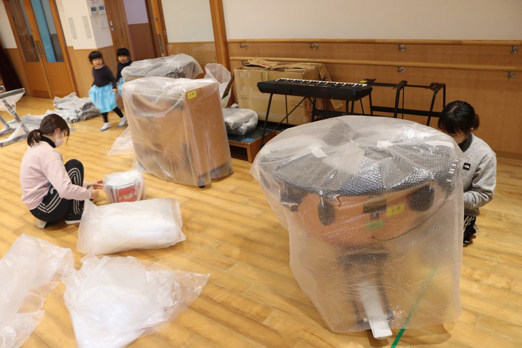 会場に搬入する楽器などの梱包準備が始まりました