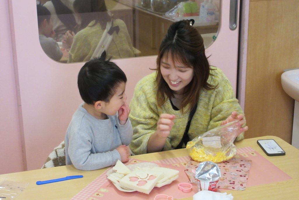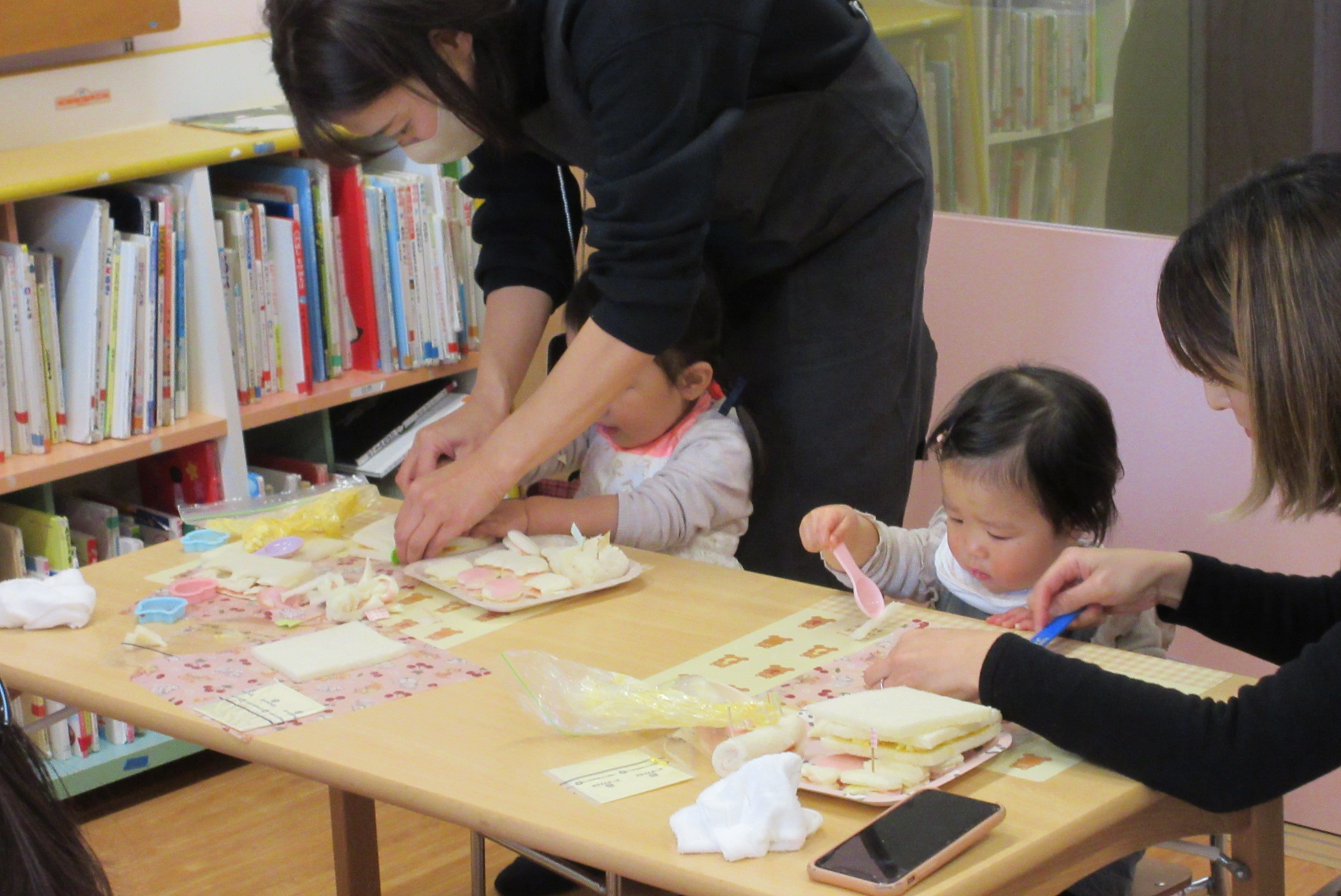 ハムとチームをはさんだり、型をとって楽しんだり・・