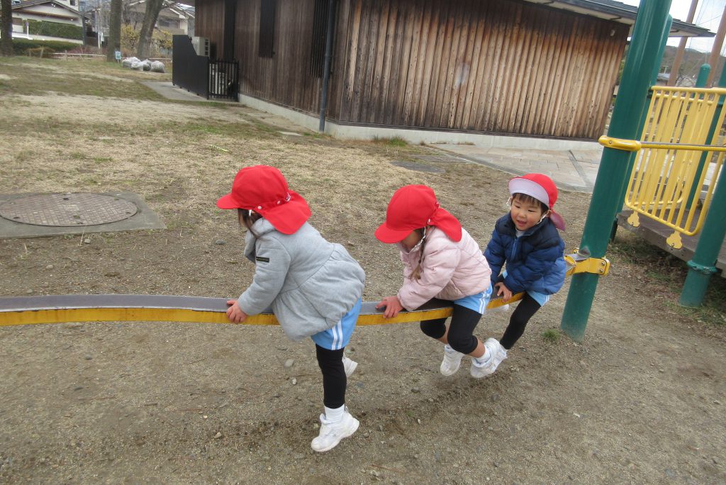 おさんぽ2024.2.8(木) 今日は2歳児クラスのつぼみ組・こぐま組で少し足をのばして岩倉東公園までお散歩に行きました 道中もしっかりとした足取りで歩くことでき 公園では大きな遊具にも大喜び 園に帰ってからは給食をモリモリ食べて、元気いっぱいの子どもたちでした