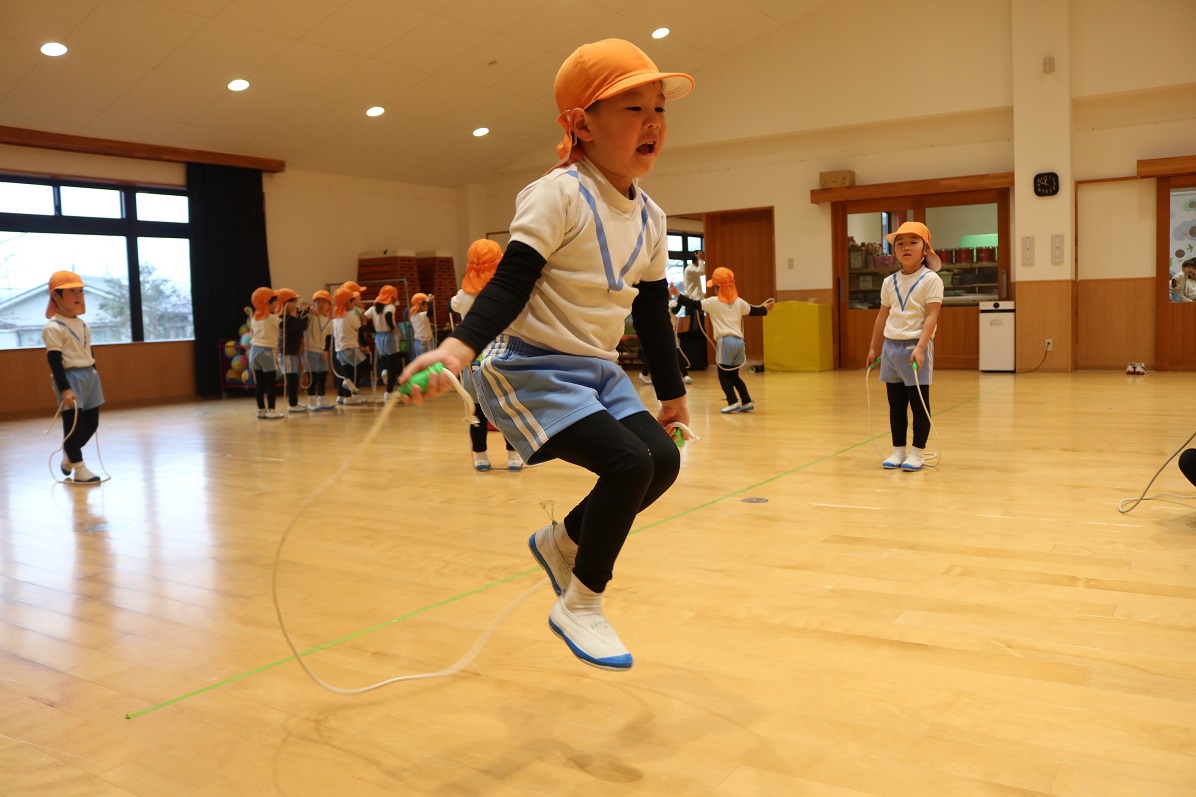 最後は年中すみれ組の体育レッスンなわとびの様子です