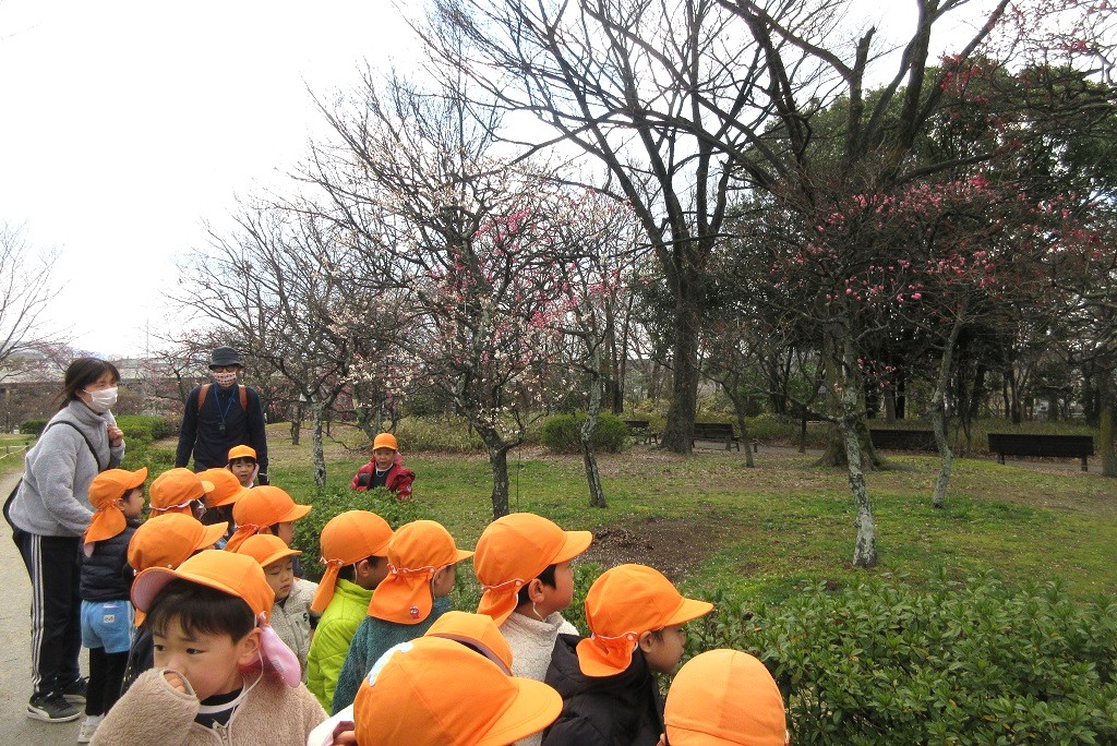 サギや梅の花を見て自然に触れることもできて大喜びの子どもたち