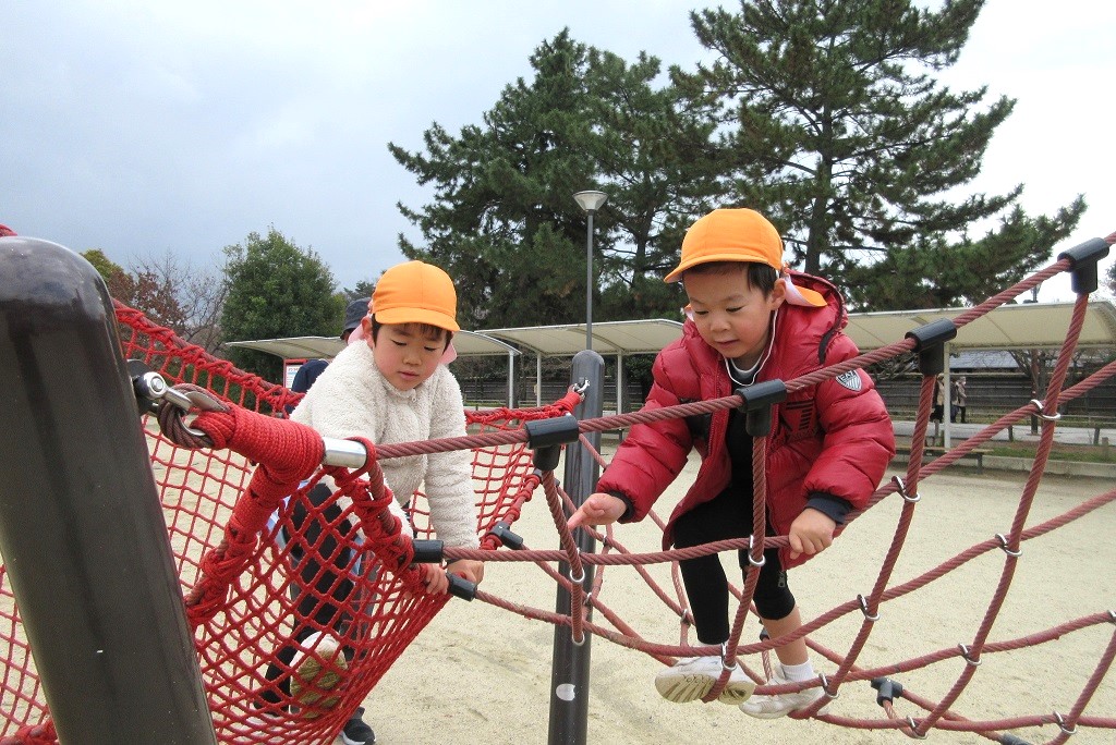 最後には船岡山公園の広場で、シーソーや長い滑り台、ブランコなどでたくさん遊びました