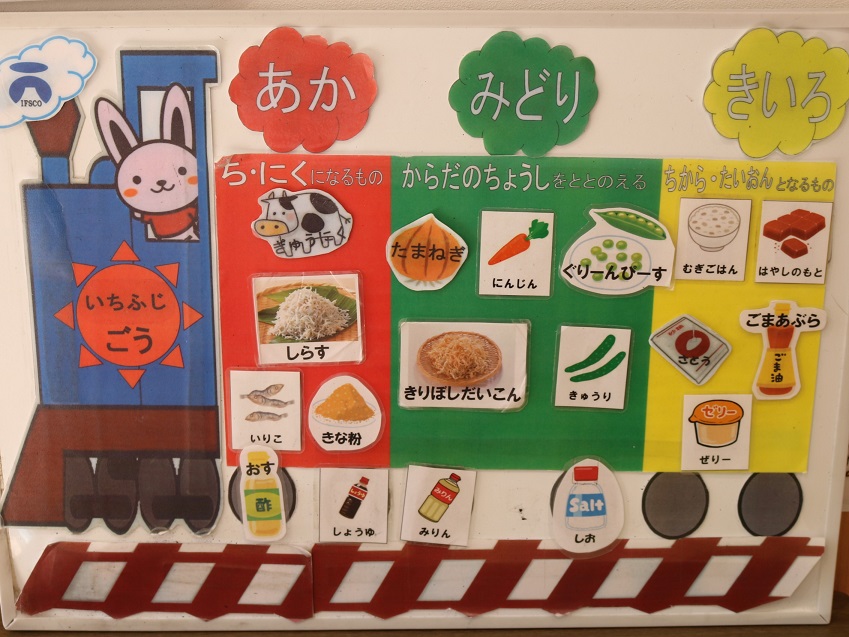 年中さん年長さんは難しいフルーツを頑張り、切れた時は「できた!」ととても喜んでいました