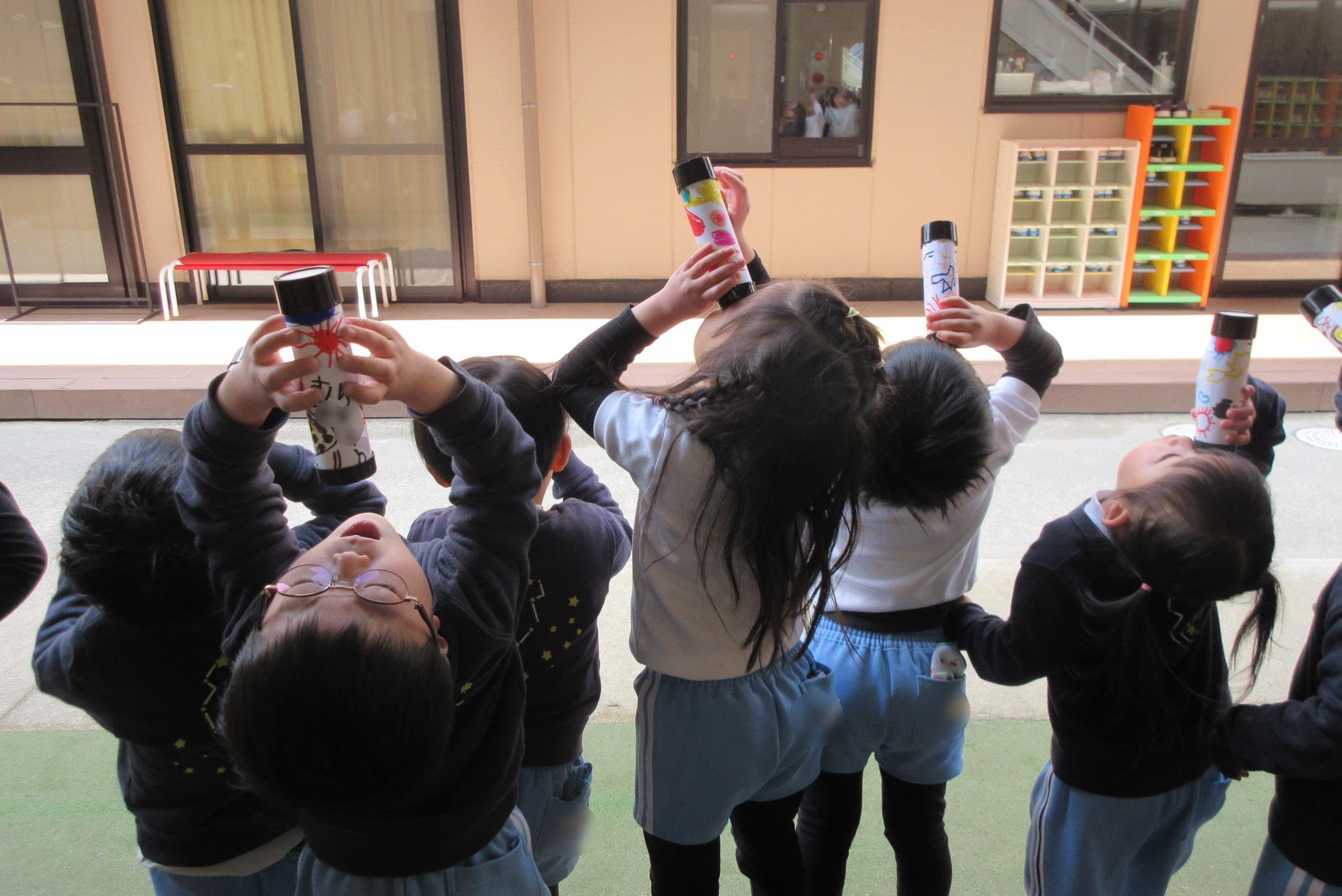 午後からは2歳児から年長組の4学年混合3チームで、中当てドッヂボール大会を青空の下楽しみました😄