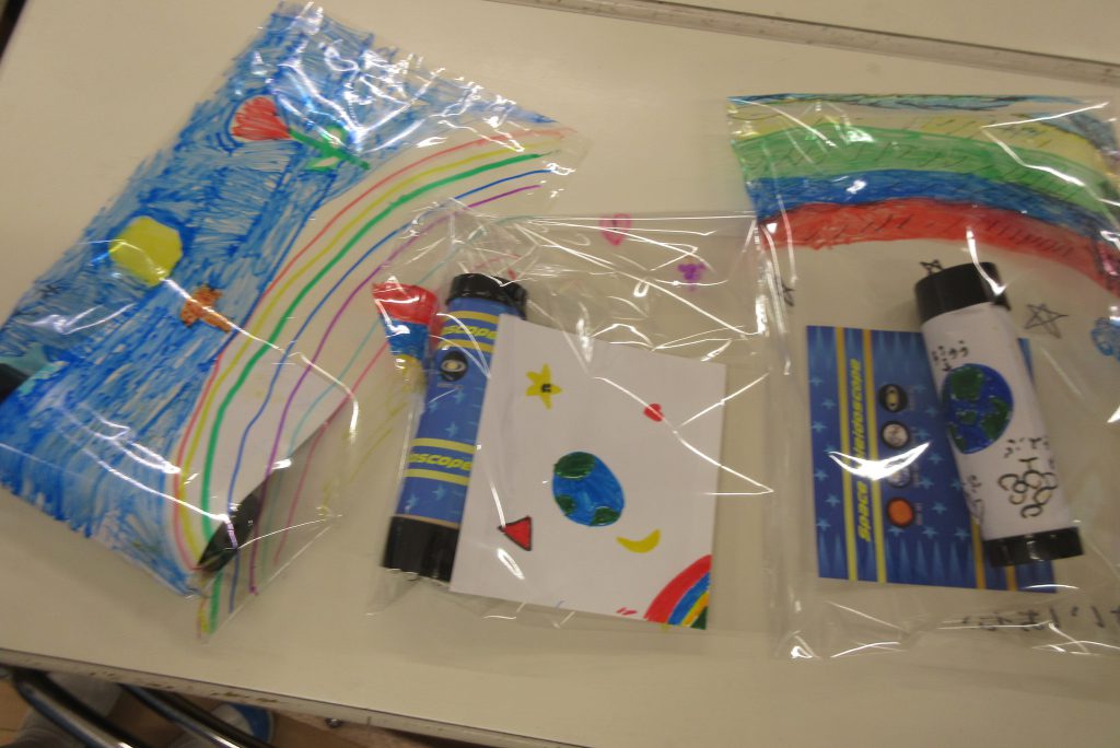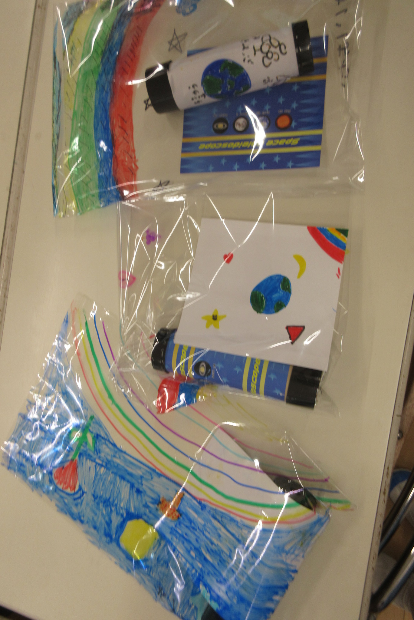 宇宙をモチーフにした万華鏡にちなみ星空や宇宙を描く子もいました