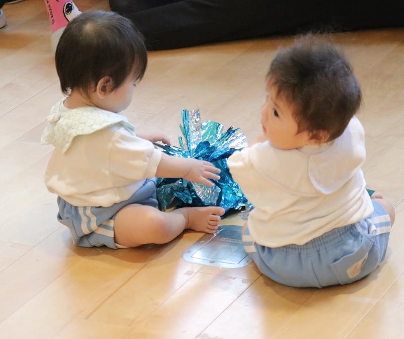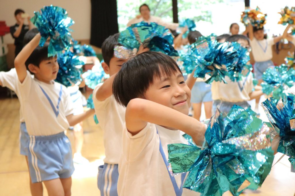 ポンポンを手にするとさらに子どもたちの気分は上がってきて