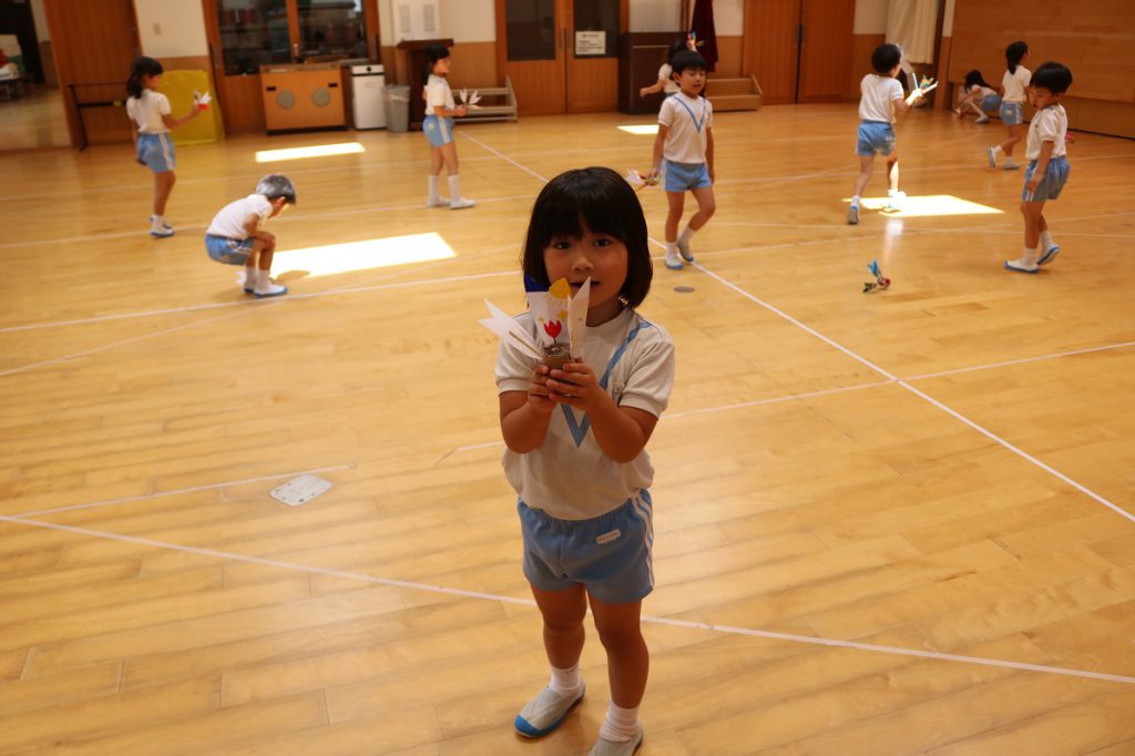 年中組・年長組は「くるくる風とんぼ」を作りました