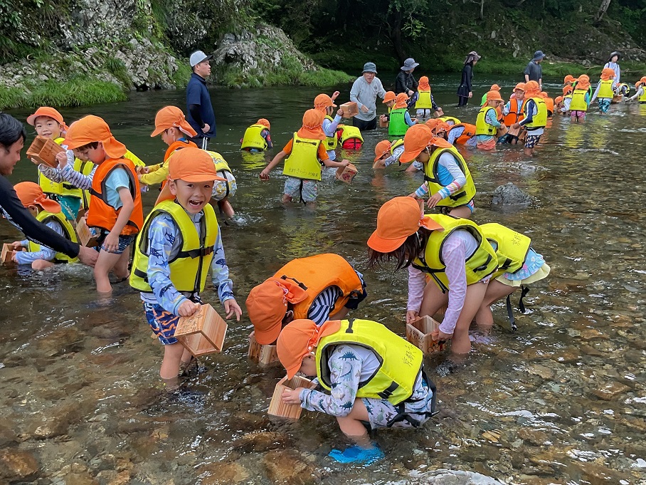 ウネウネお皿の面白い動きや、風とんぼがクルクル回る様子に大喜びの子ども達