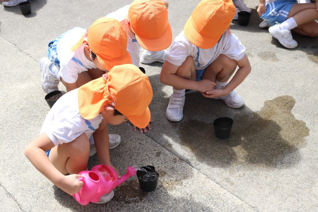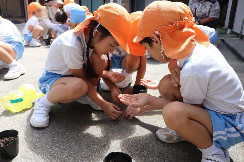 芽が出る楽しみと花壇にコスモスの花が咲き誇る楽しみを