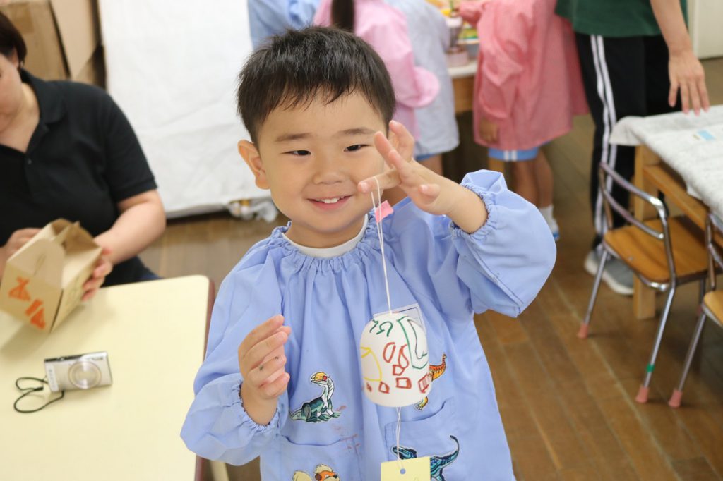 風鈴の本体や短冊にそれぞれ思い思いの好きな絵や模様を描き