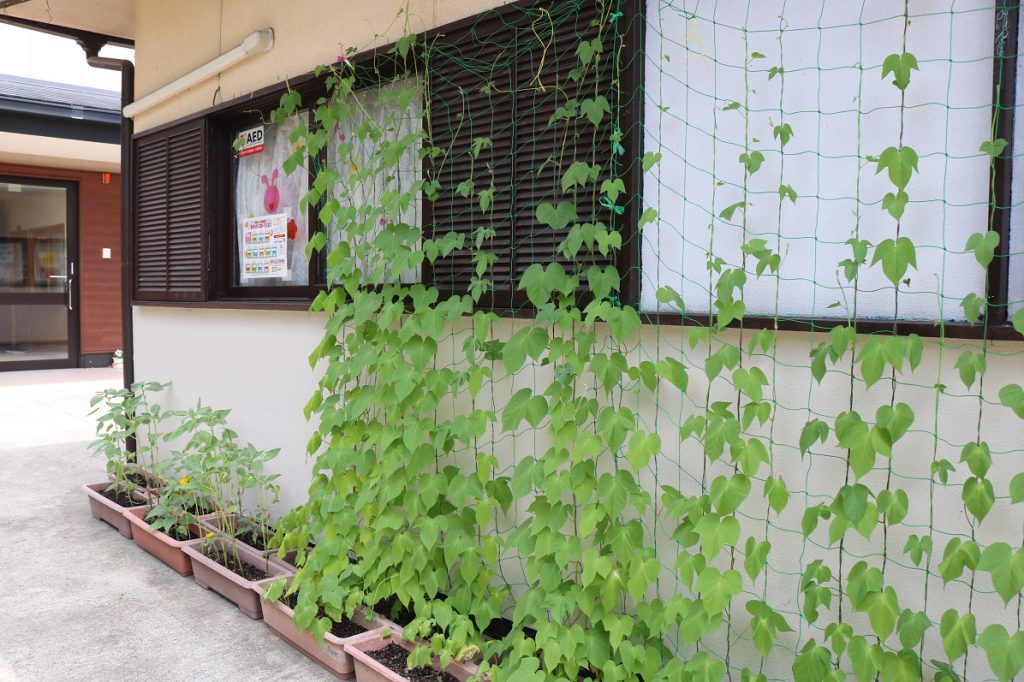 まもなく職員室の窓に緑のカーテンが出来上がりそうです