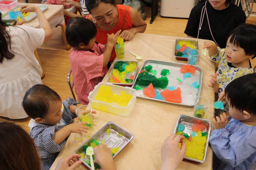 今日の子育て支援は「感触遊びぷるぷるゼリー」