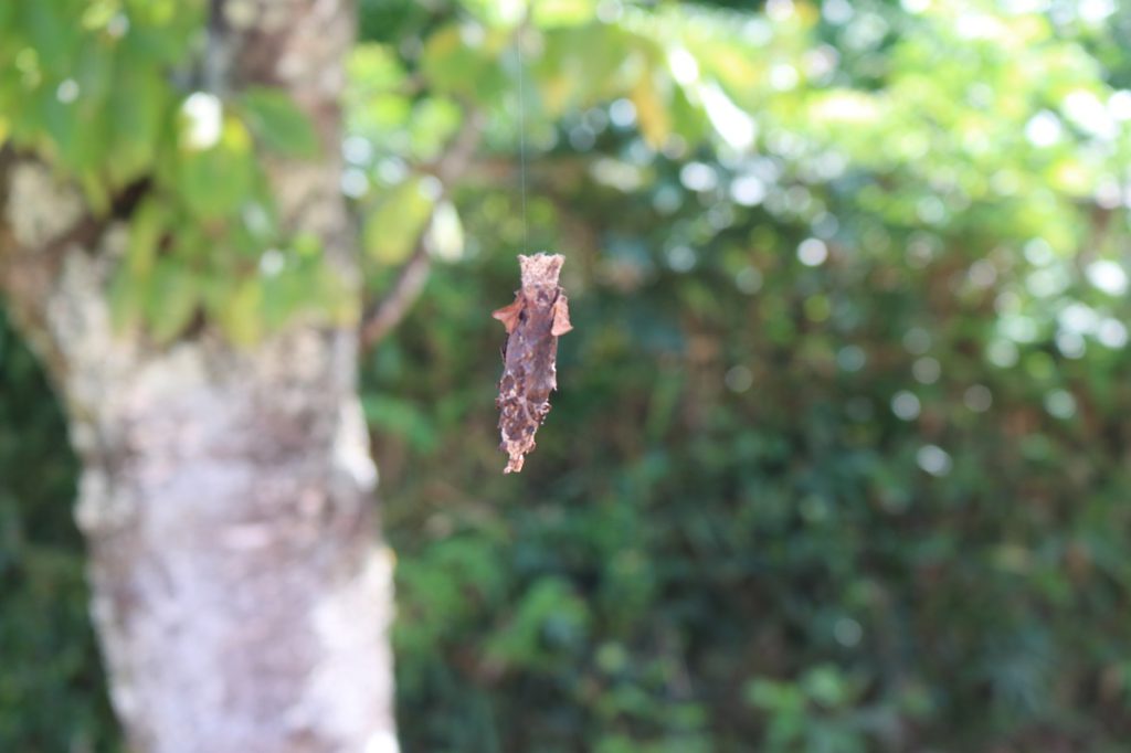 今日園庭の桜の木からみのむしがぶら下がっているのを発見