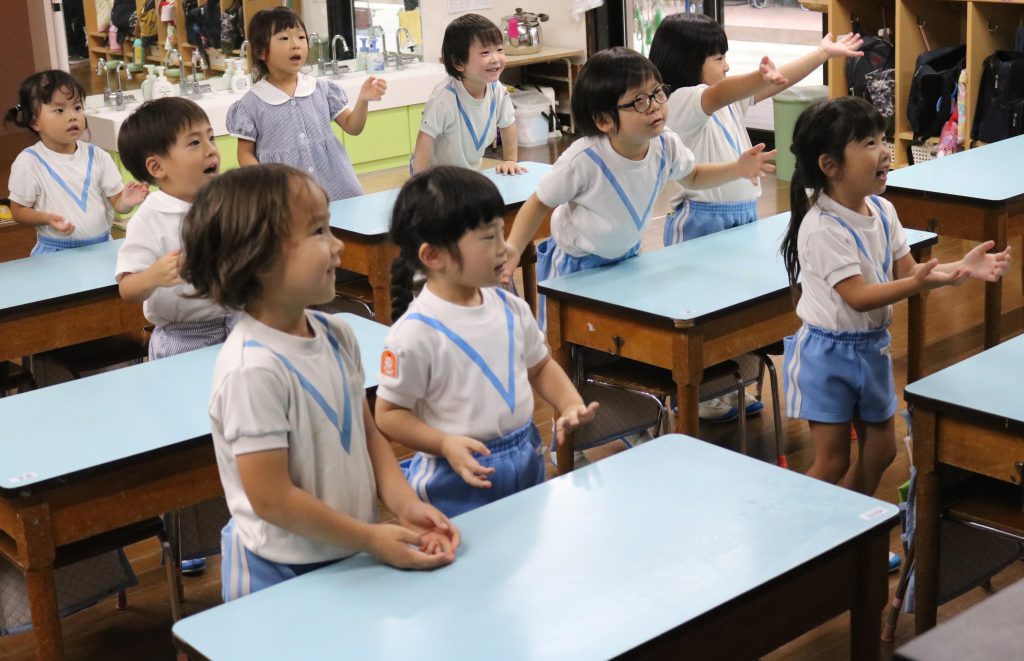 年少もも組の英語レッスンでは