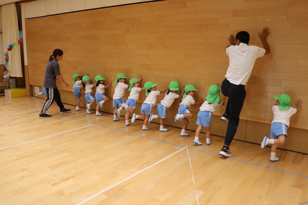 写真は2歳児つぼみ組の体育レッスン