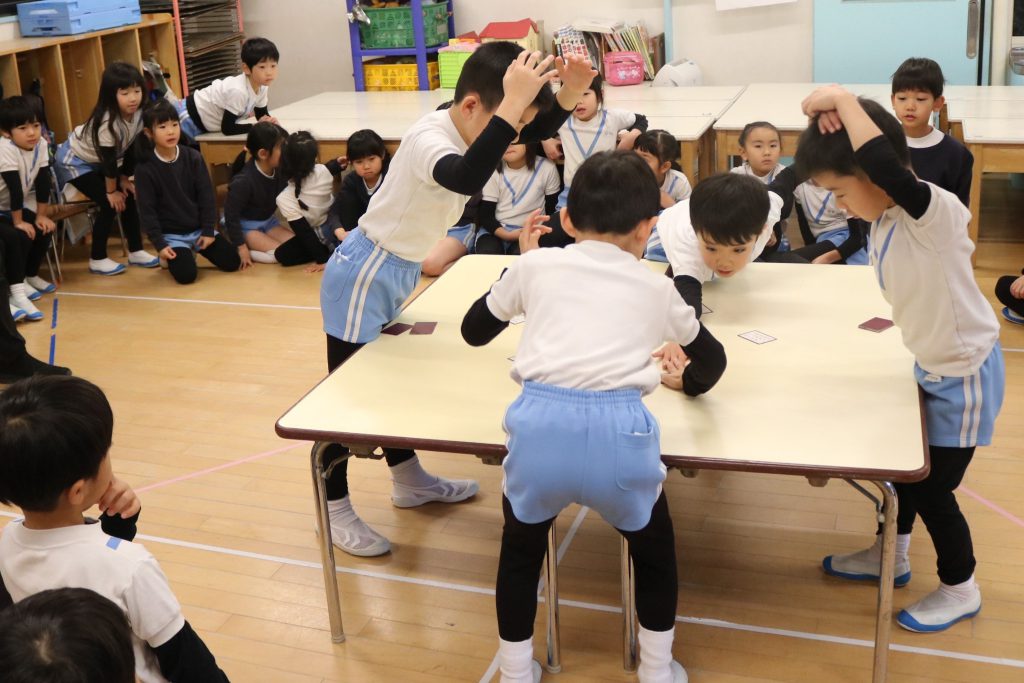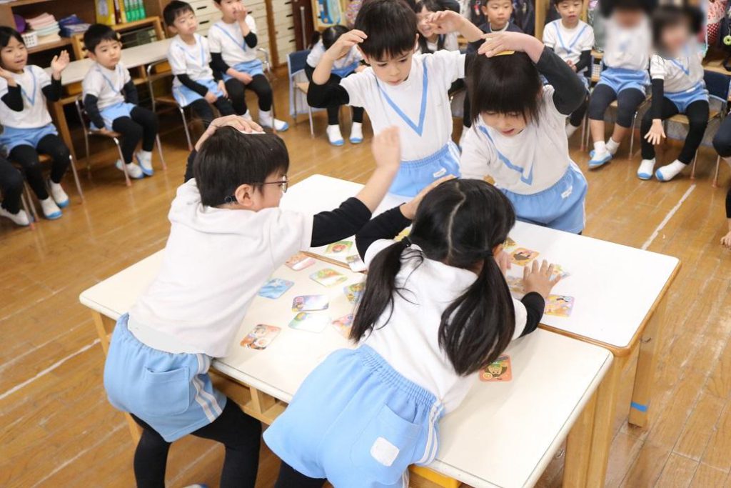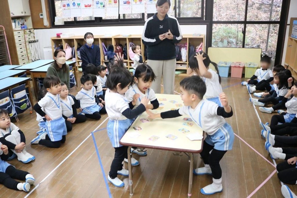 先生がかるたを読みだすと真剣なまなざしに変わり