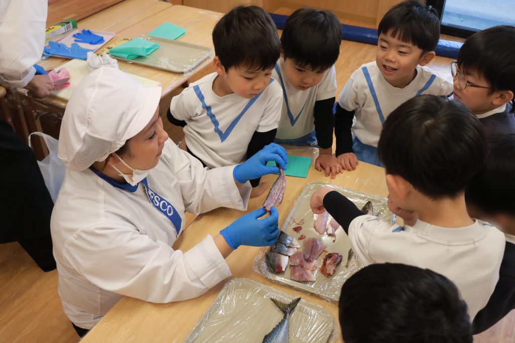 年中児が魚(アジ)の解体学習を体験しました