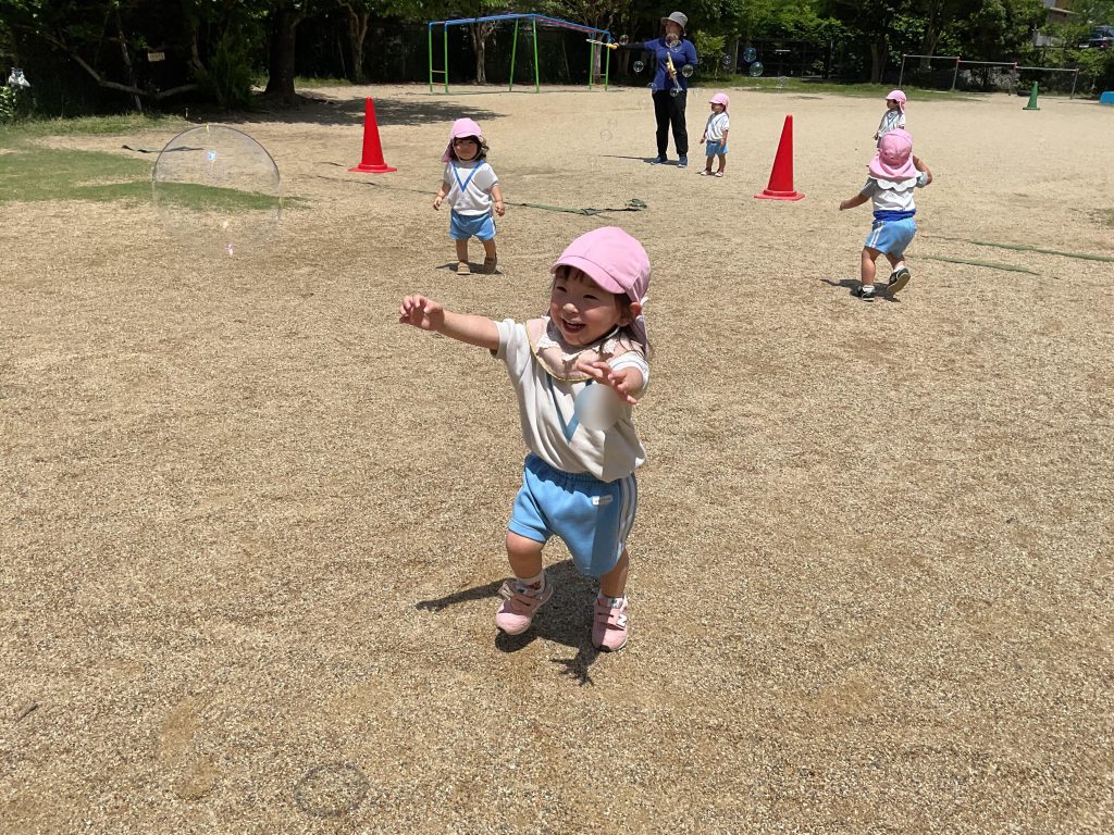 シャボン玉を追いかけるかわいい1歳児さんです!!