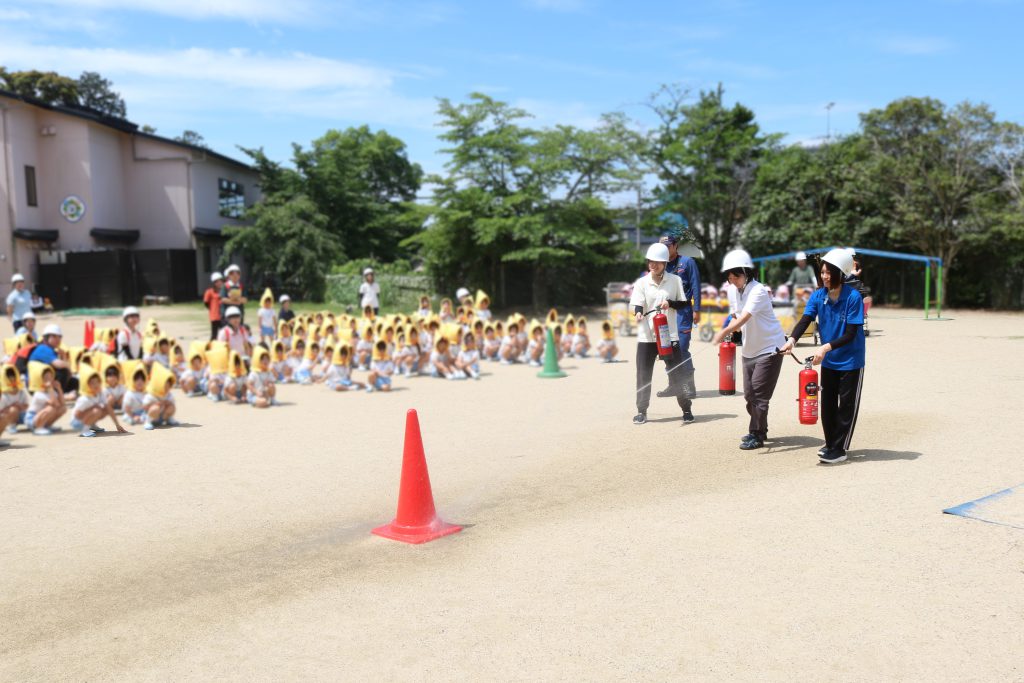 火災訓練指導のために園に来てくださいました