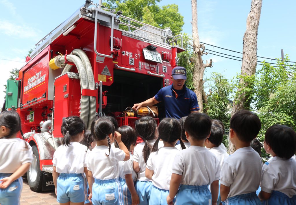 今日は左京消防署修学院出張所の消防隊員の方々が