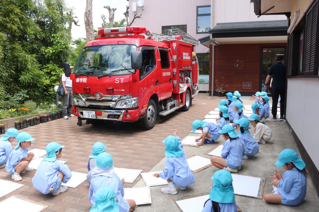 最後は年長組の消防車の写生タイムでした