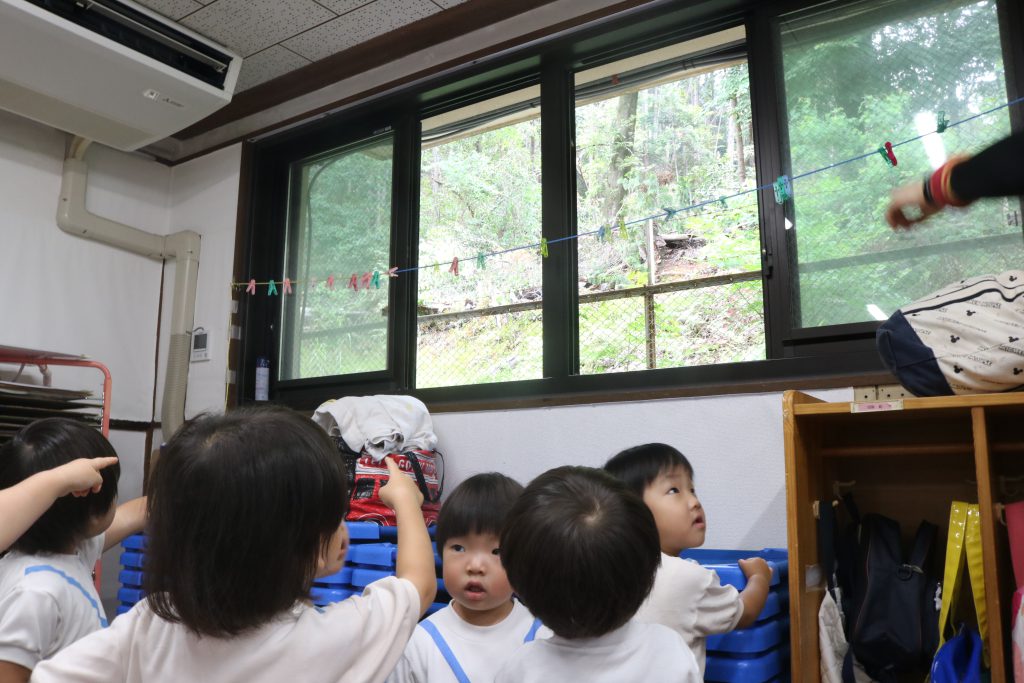 そして、今日は保育室から見える裏山に