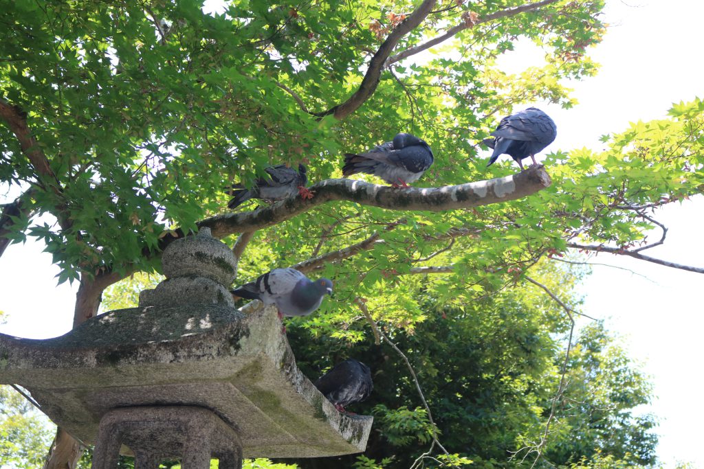 暑くて鳩たちも木陰で過ごします