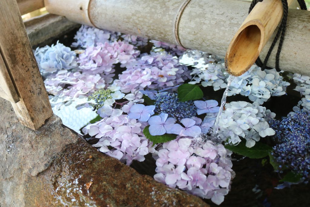 紫陽花の花手水がきれいでした